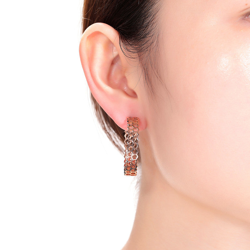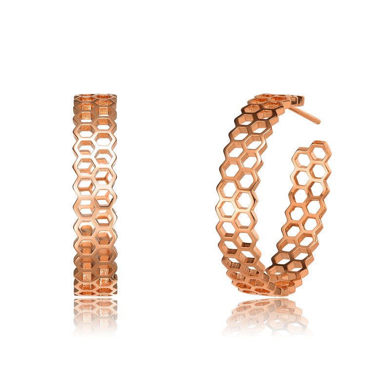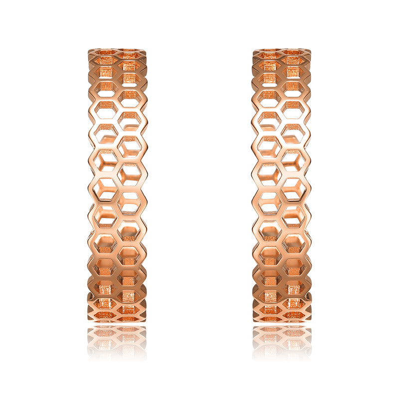 18K Rose Gold Plated Honeycomb Design Hoop Earrings