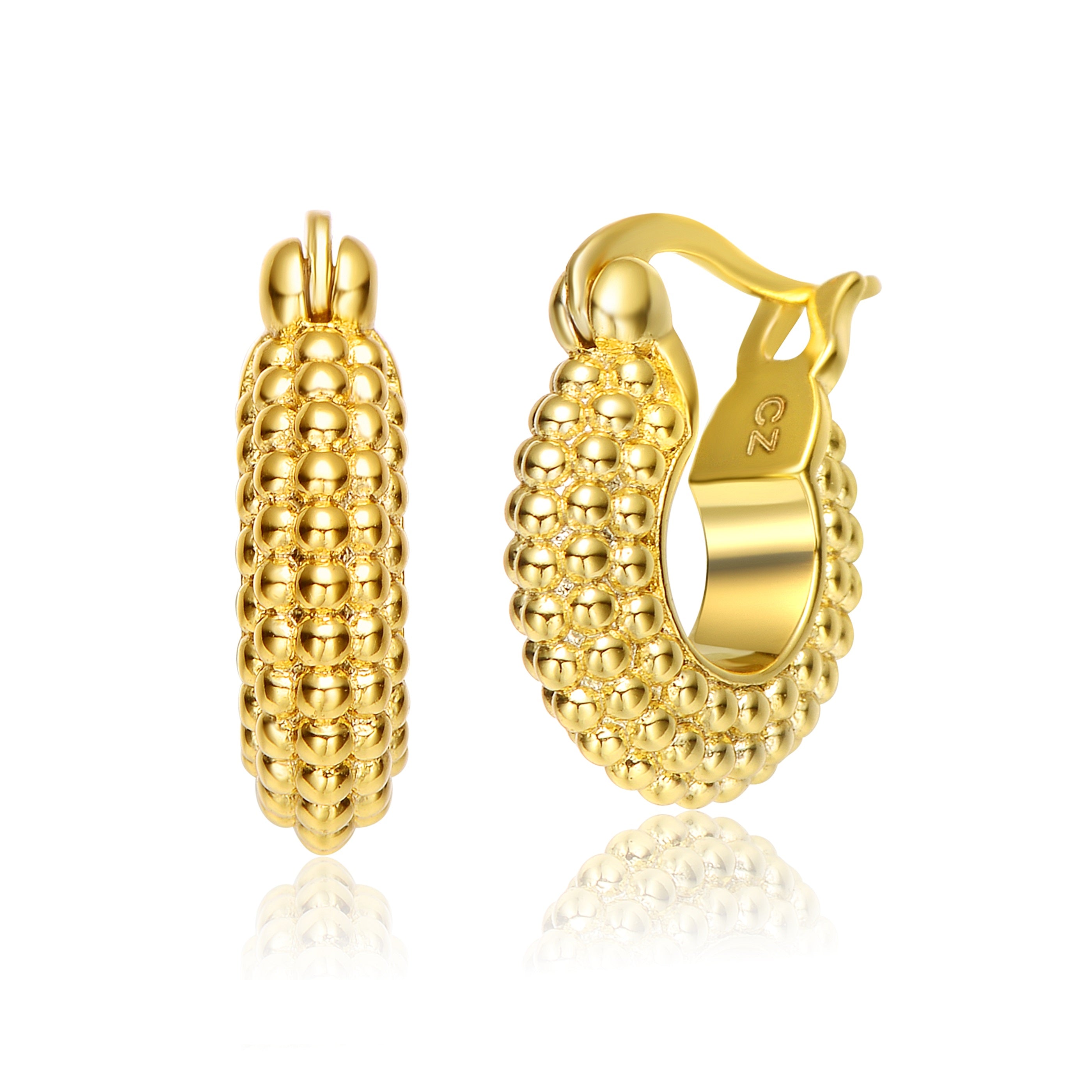 Elegant 14k gold plated bead hoop earrings. These earrings feature interesting small hoop design made out of small beads out of solid metal, in few rows, elegantly curved, making the perfect hoop. crafted with 14k gold plating and secure with a saddle back closure. It's a unique piece of jewelry for all combinations. These also make a sensational gift for a special birthday or occasion.