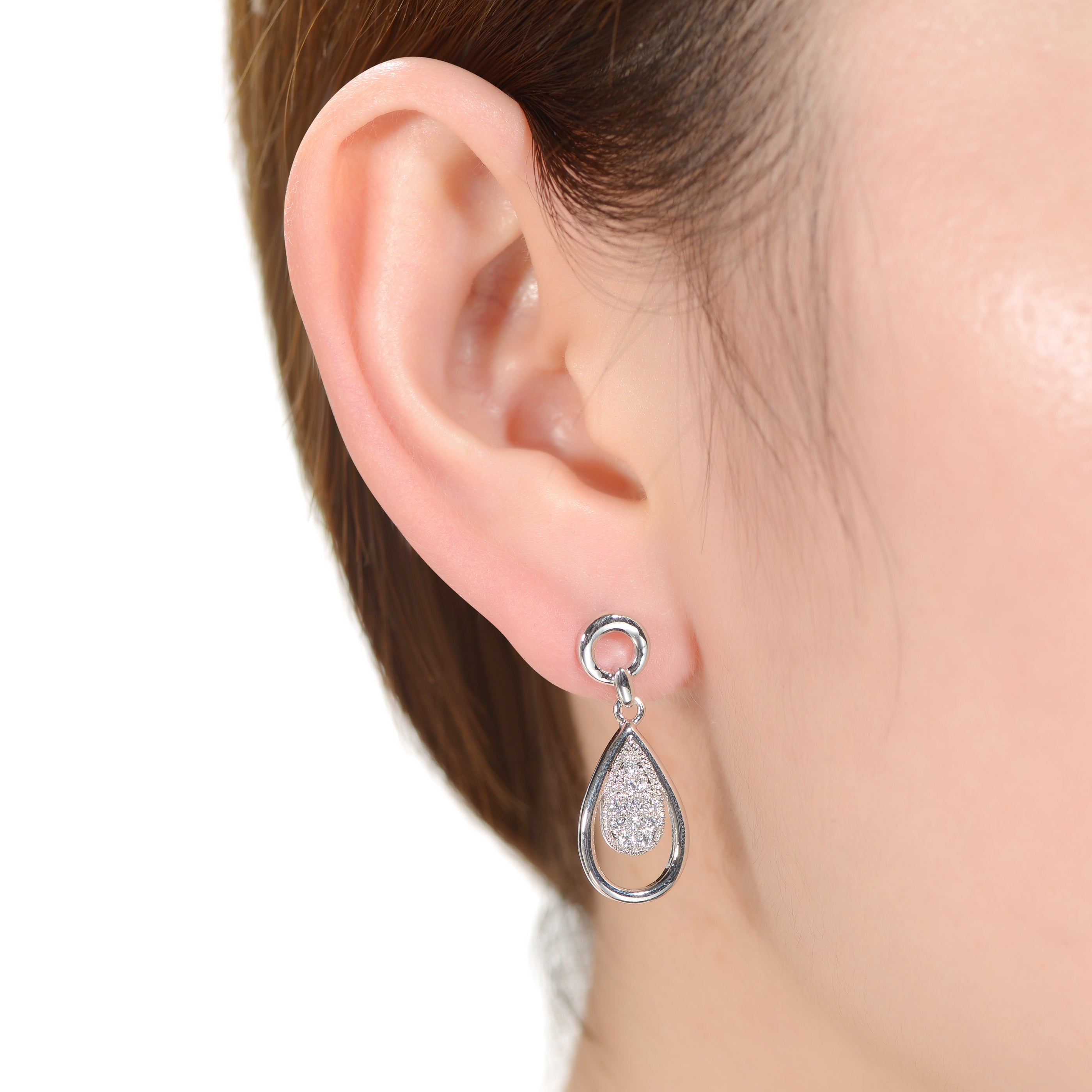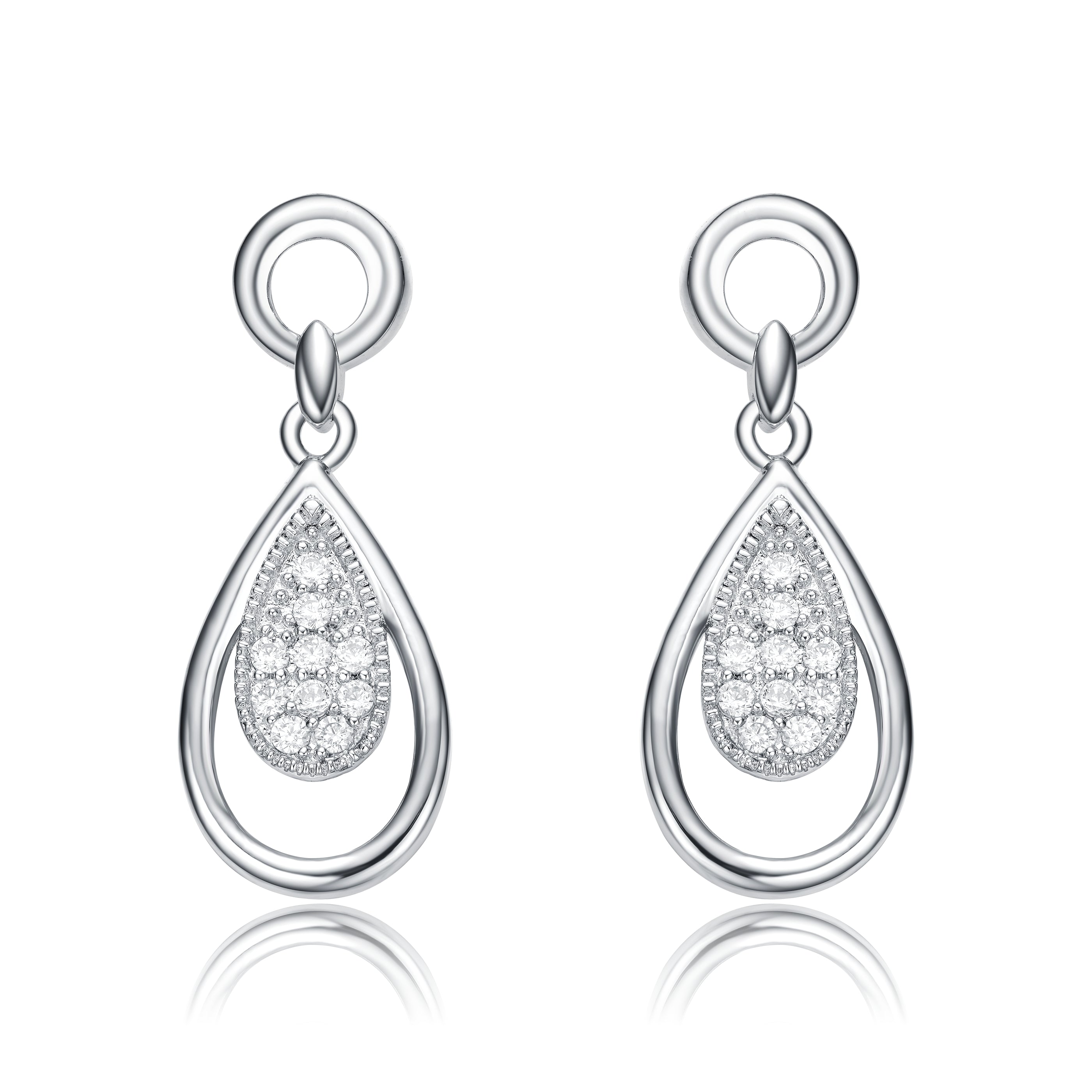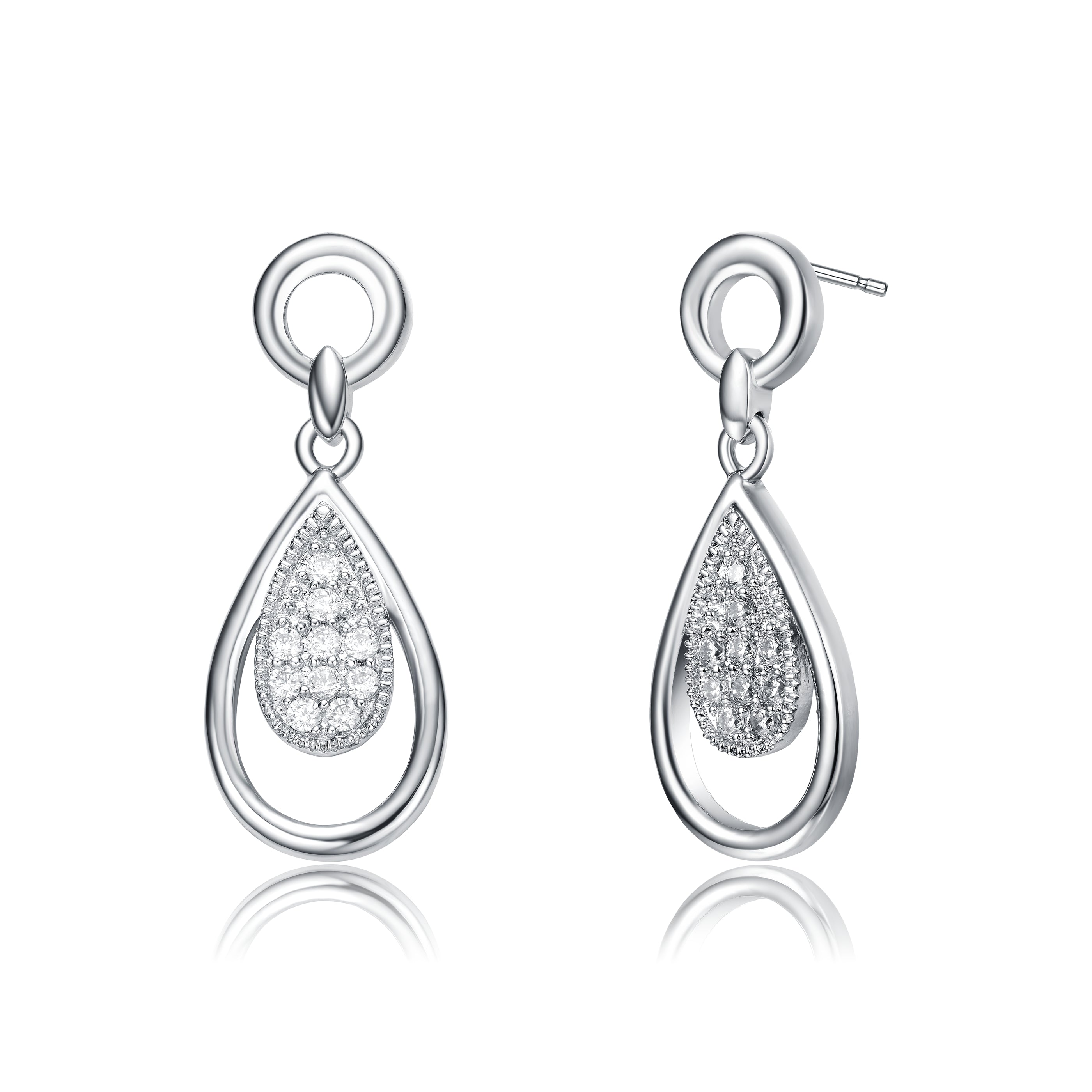 Elagant Rhodium Plated Cubic Zirconia Pear Drop Earrings