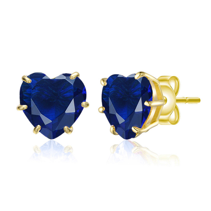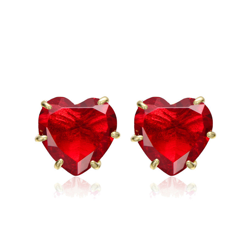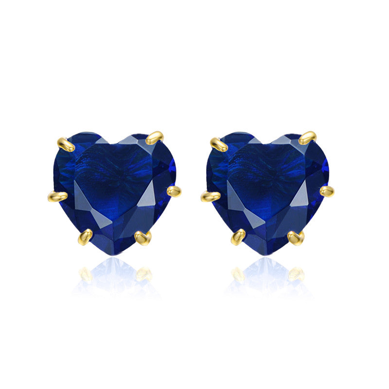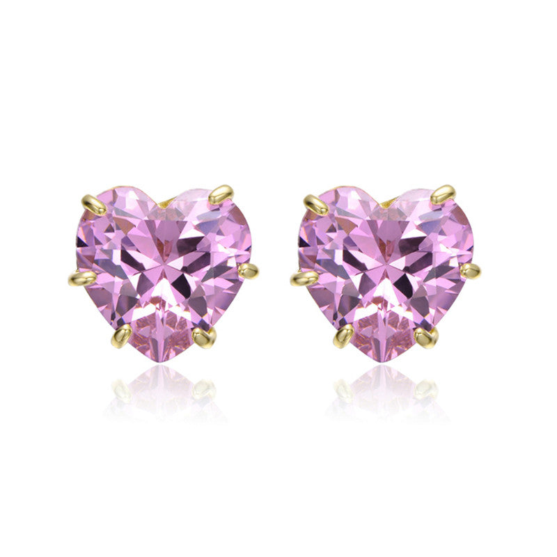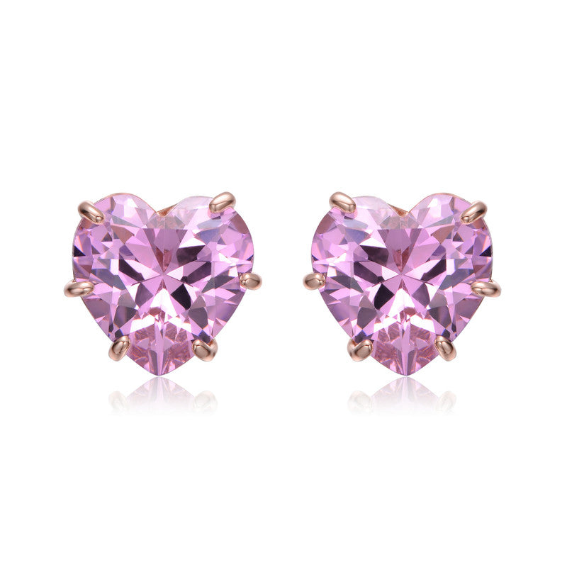 Heart-Shaped Colored Cubic Zirconia Stud Earrings