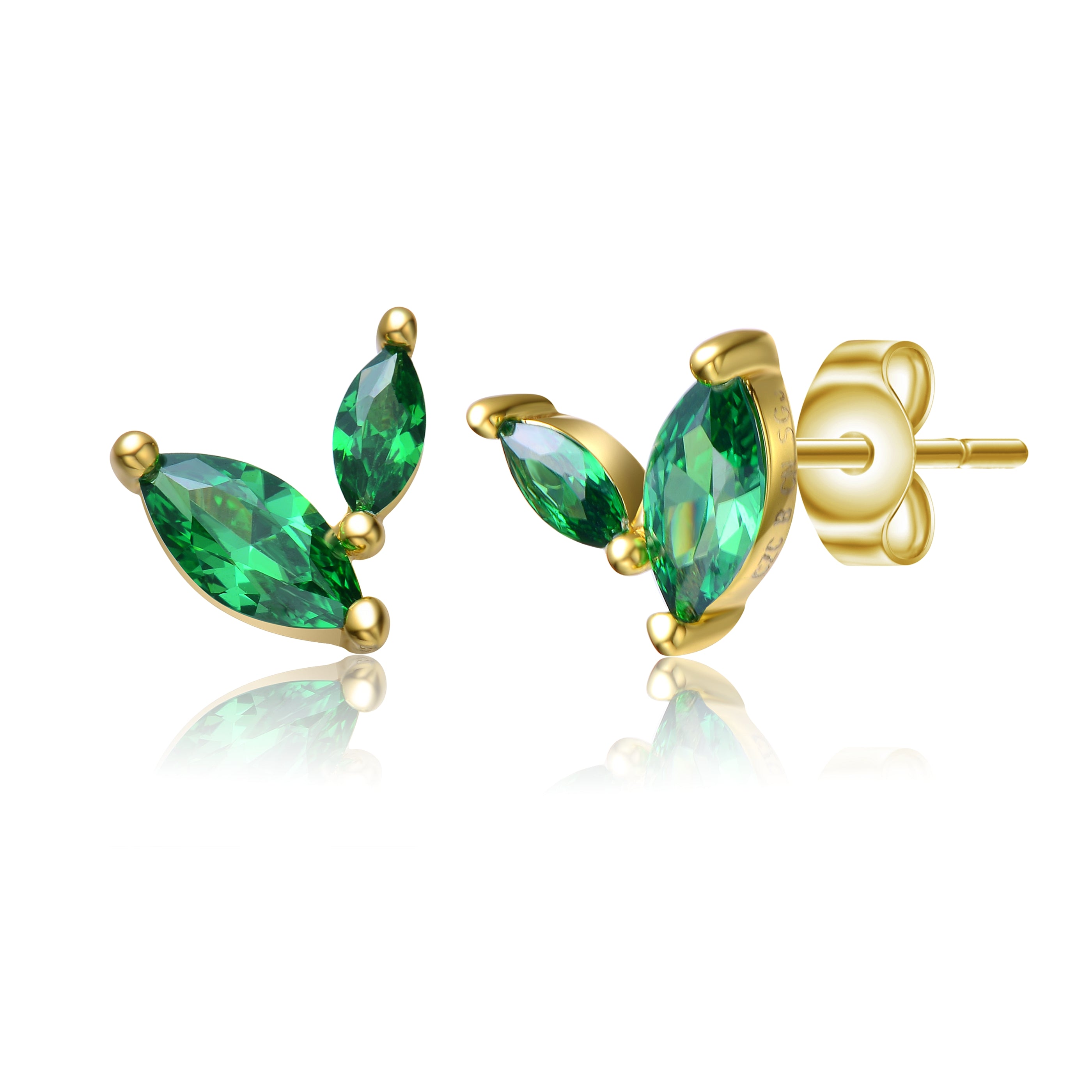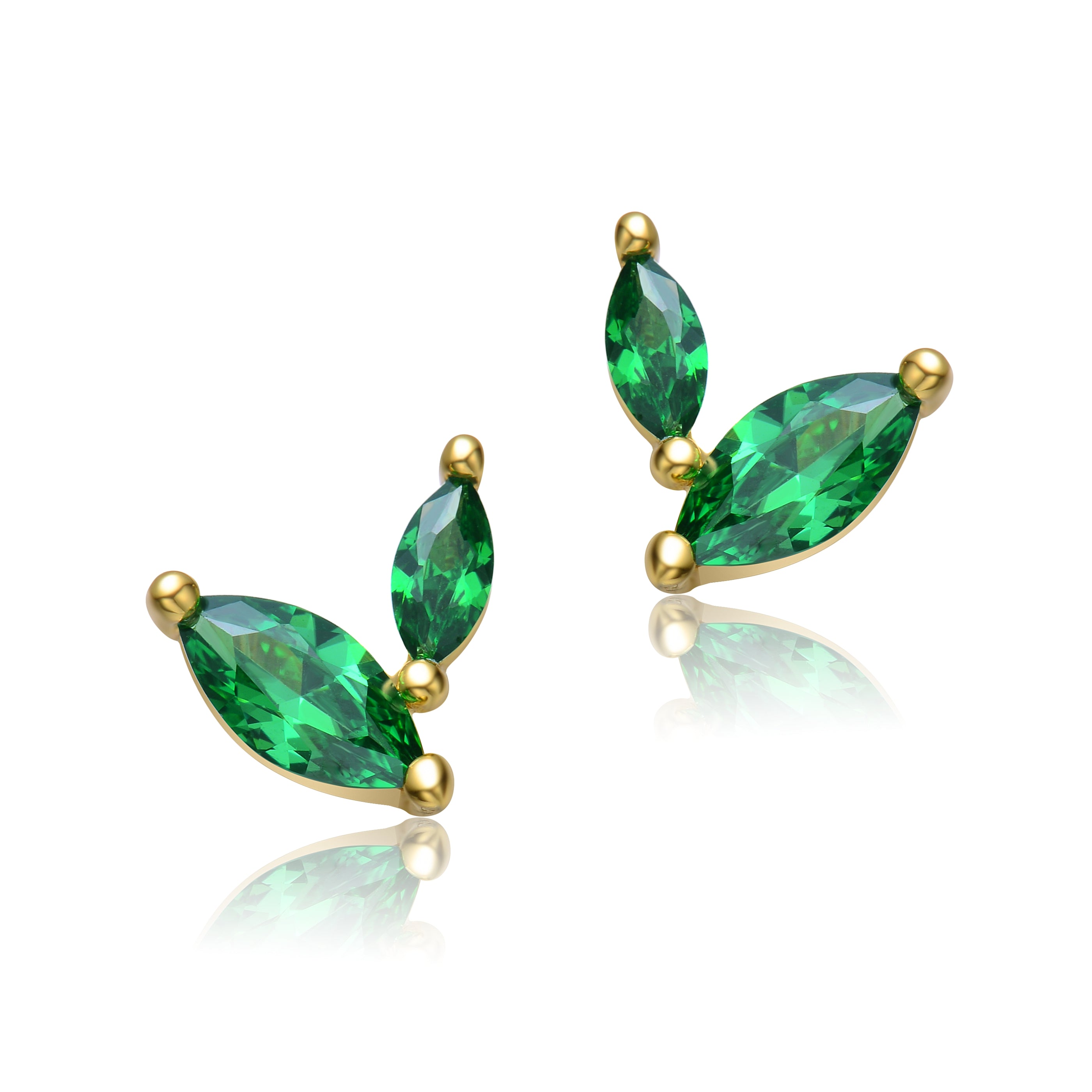 Kids 14k Gold Plated Green Cubic Zirconia Fern Leaf Stud Earrings. Add holiday cheer to your finest family moments with these holiday children's fern leaf stud earrings, twinkling with marquise green cubic zirconia prong set in a fanciful cluster. Boost any photo-taking moment and cute outfit with these cheerful stud earrings, featuring a lightweight, comfortable silhouette and held in place with butterfly backs. Created in durable 14k gold plating.