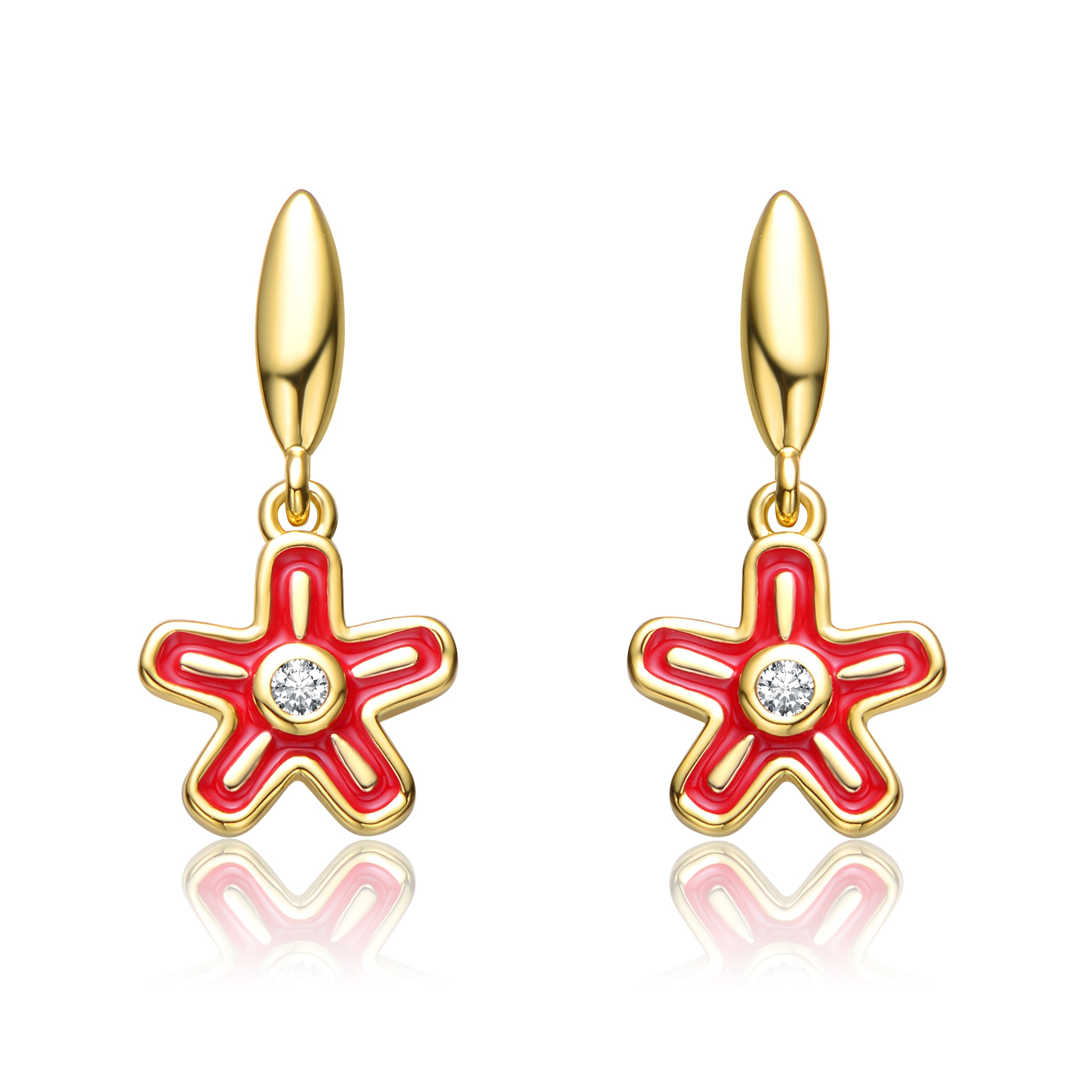Kids 14k Gold Plated Red Enamel Dangle Star Flower Earrings