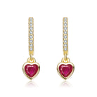 Kids 14K Gold Plated Ruby Red Heart Cubic Zirconia Drop Earrings with Clear CZ Accents