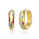 Kids 14K Gold Plated with Colored Cubic Zirconia Wide Hoop Earrings