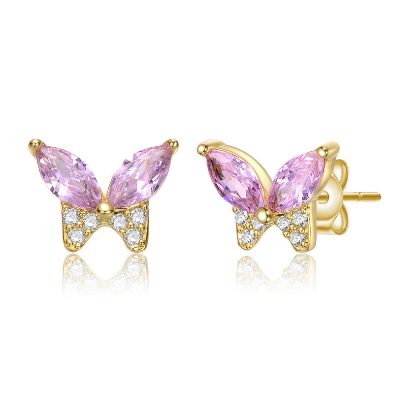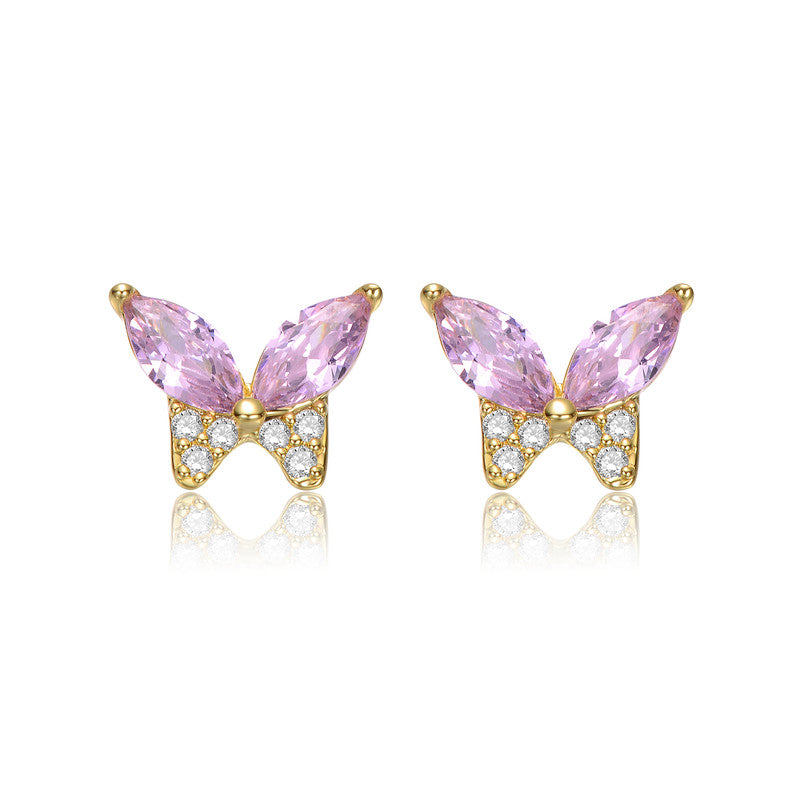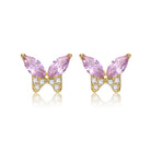 Kids 14k Gold Plated with Pink Cubic Zirconia Butterfly Stud Necklace