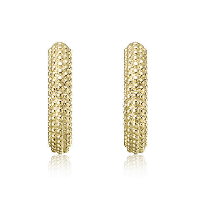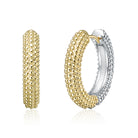 Add a touch of elegance to your ensemble with these "Two-Tone with Beaded Texture Hoop Earrings." Skillfully crafted, these earrings showcase a delightful interplay of two tones: White Gold Plated & 14K Gold Plated, exuding a versatile and modern charm. The intricate beaded texture adds depth and dimension, offering a unique blend of sophistication and style. Perfect for both casual outings and formal events, these hoops are a must-have addition to your jewelry collection!