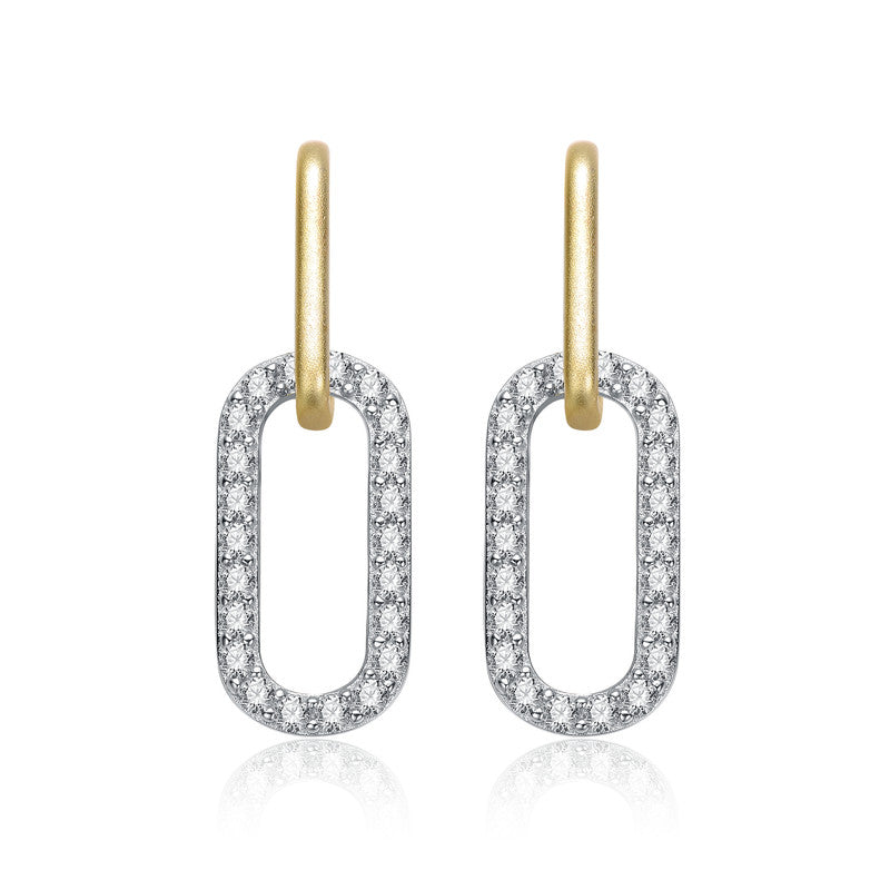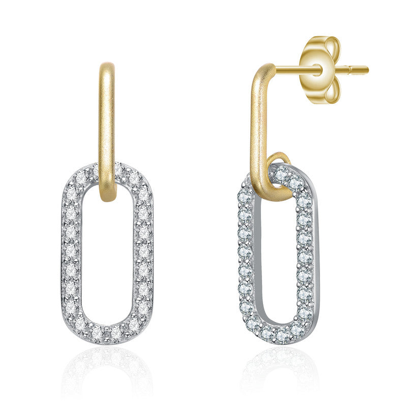 Two Tone with Clear Cubic Zirconia Drop Earrings