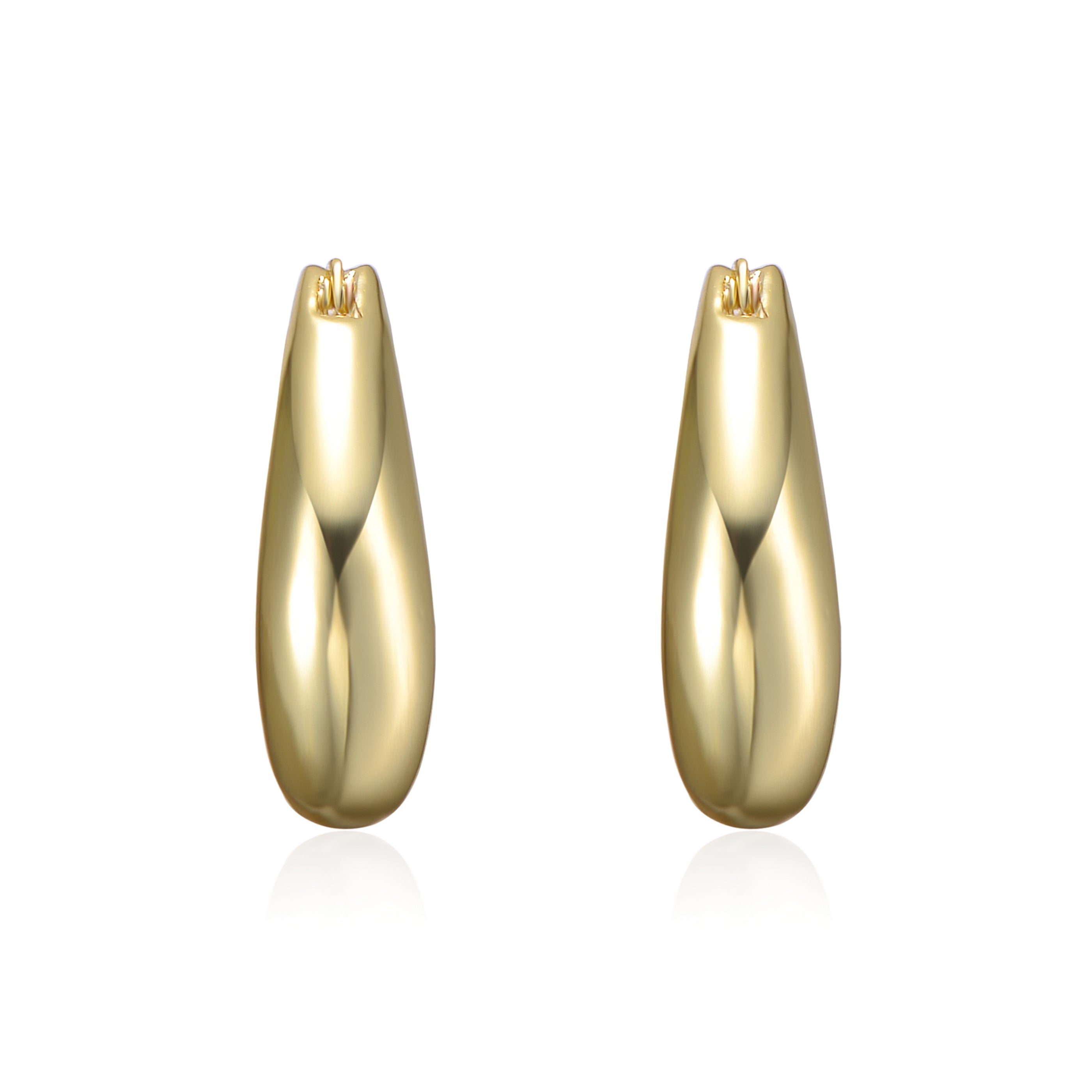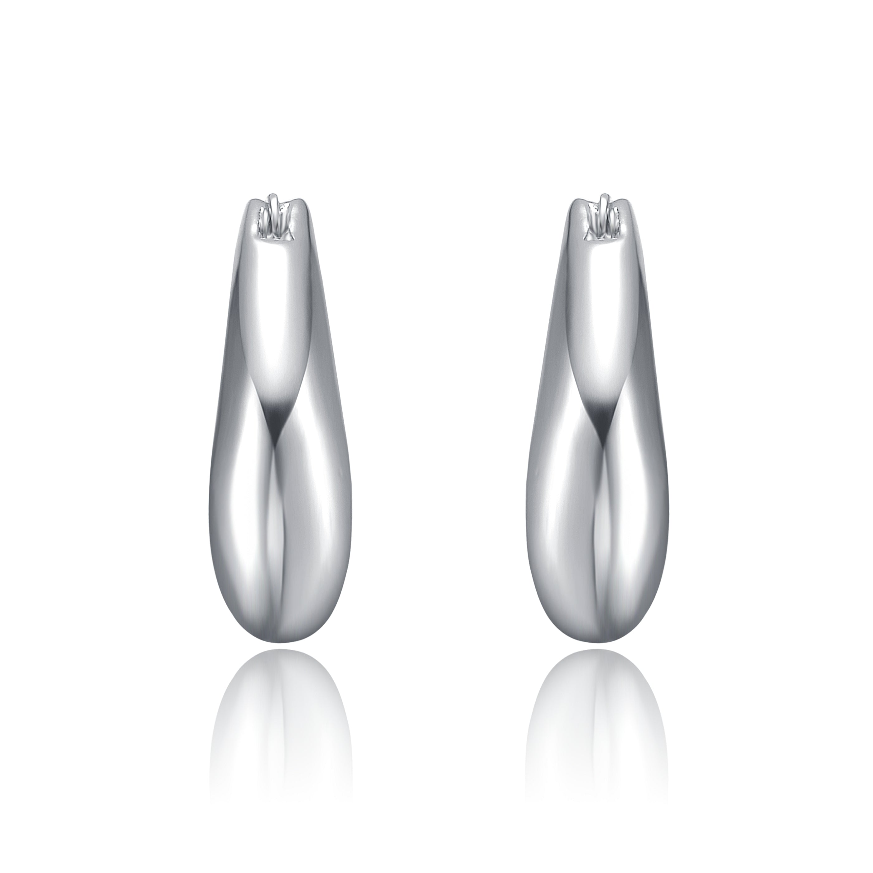 White Gold Plated Artistic Puffy Hoop Earrings. Upgrade any wardrobe with these shiny hoop earrings, fashioned into an artistic oblong puffy shape, making them lightweight on the ears. Finish any outfit with the classic elegance of hoop earrings, adding a modern detail to your jewelry collection that is also timeless. Click-top posts keep these earrings in place, adding movement and swing as the glisten in the light.