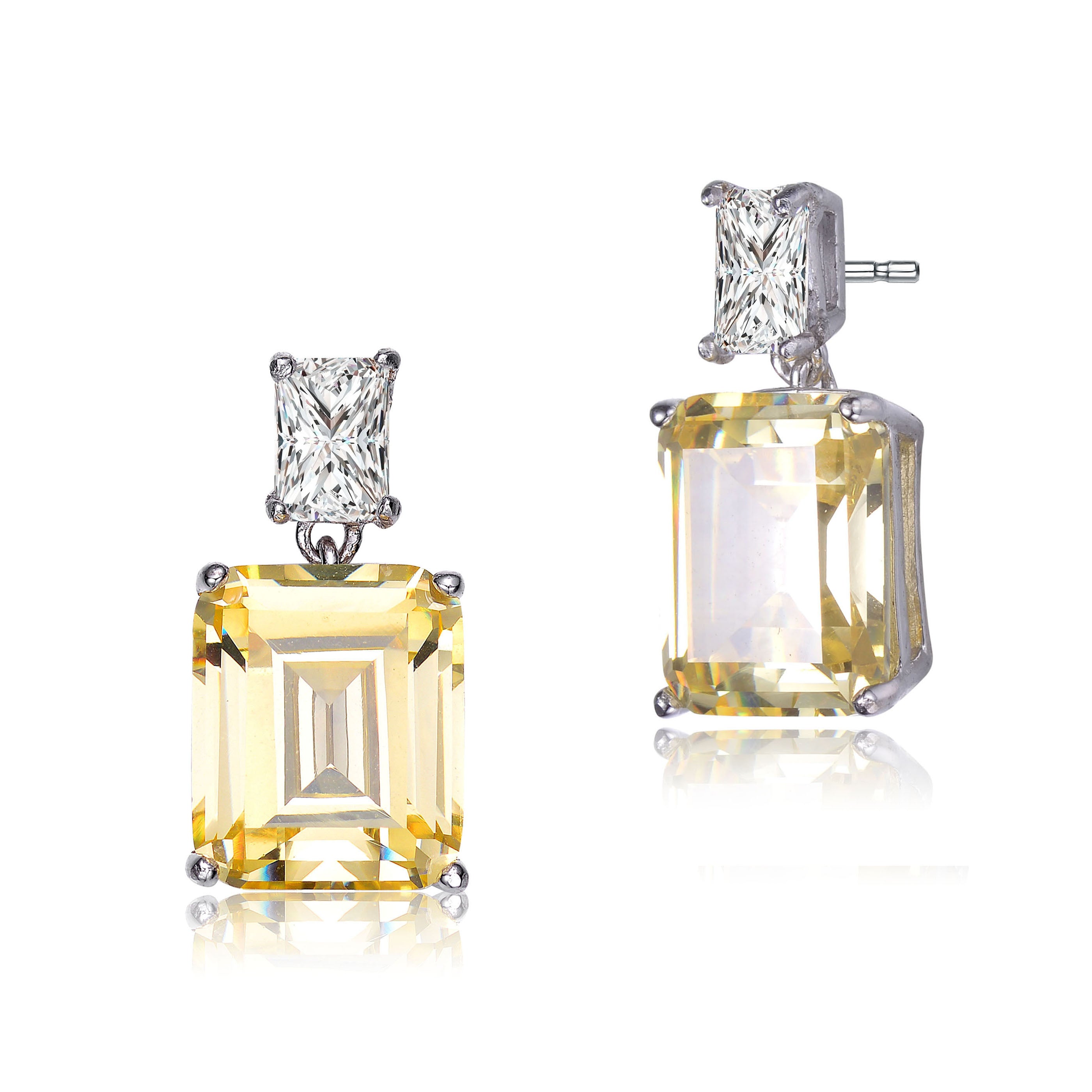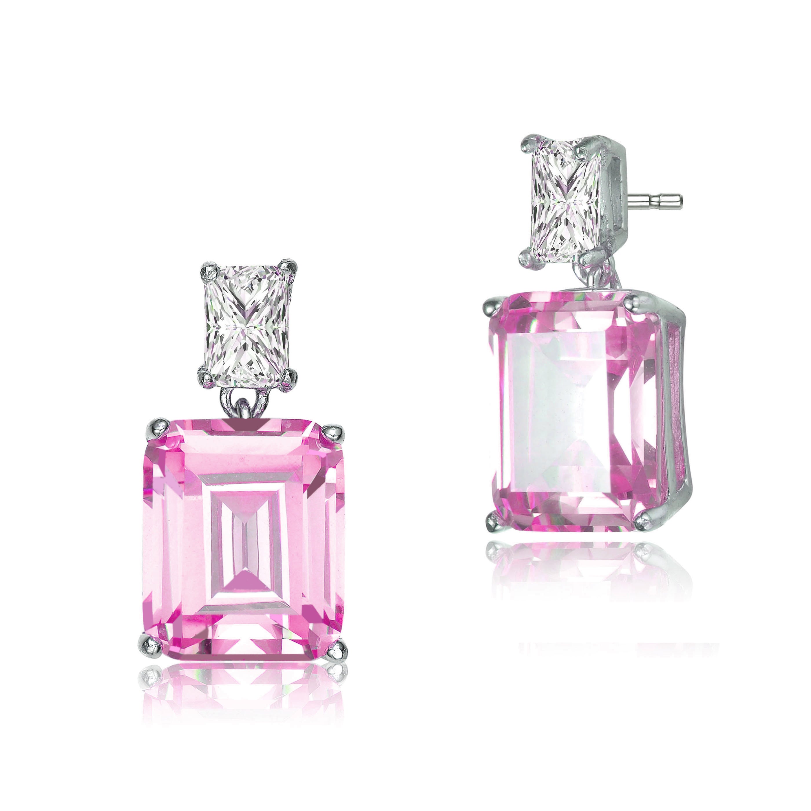 Elevate your style with these stunning rectangle stud earrings. Crafted in white gold plated sterling silver, each earring features a vibrant emerald green, sunny yellow, rich ruby red, soft pink, or deep sapphire blue cubic zirconia, exquisitely showcased in a secure prong setting. The pin and post clasp ensures comfortable wear and a secure fit. Adorn yourself with brilliance and sophistication. Measurement 19mm