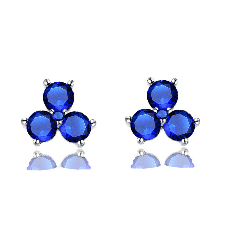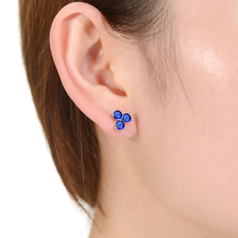 White Gold Plated with Clear Cubic Zirconia Three Stone Stud Earrings