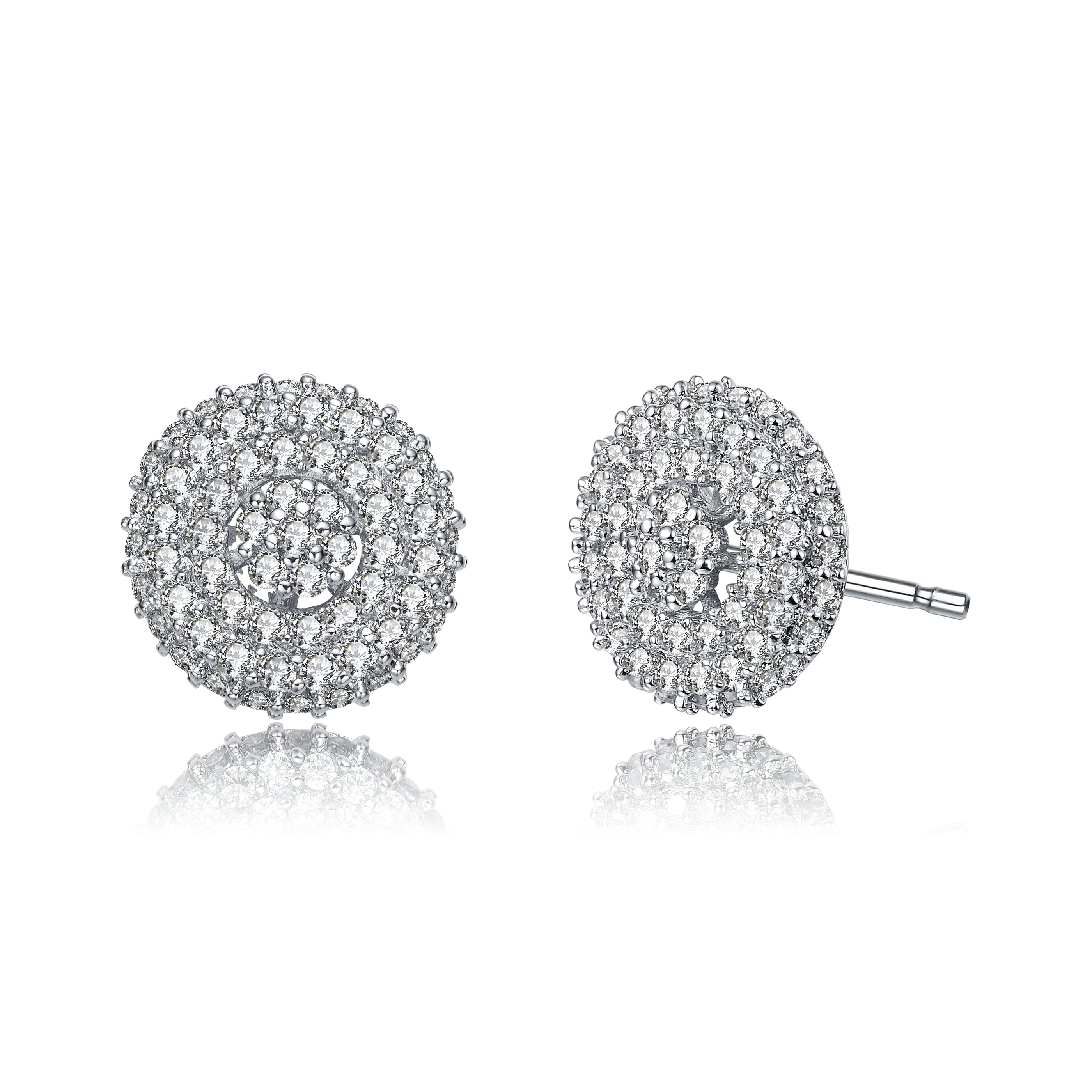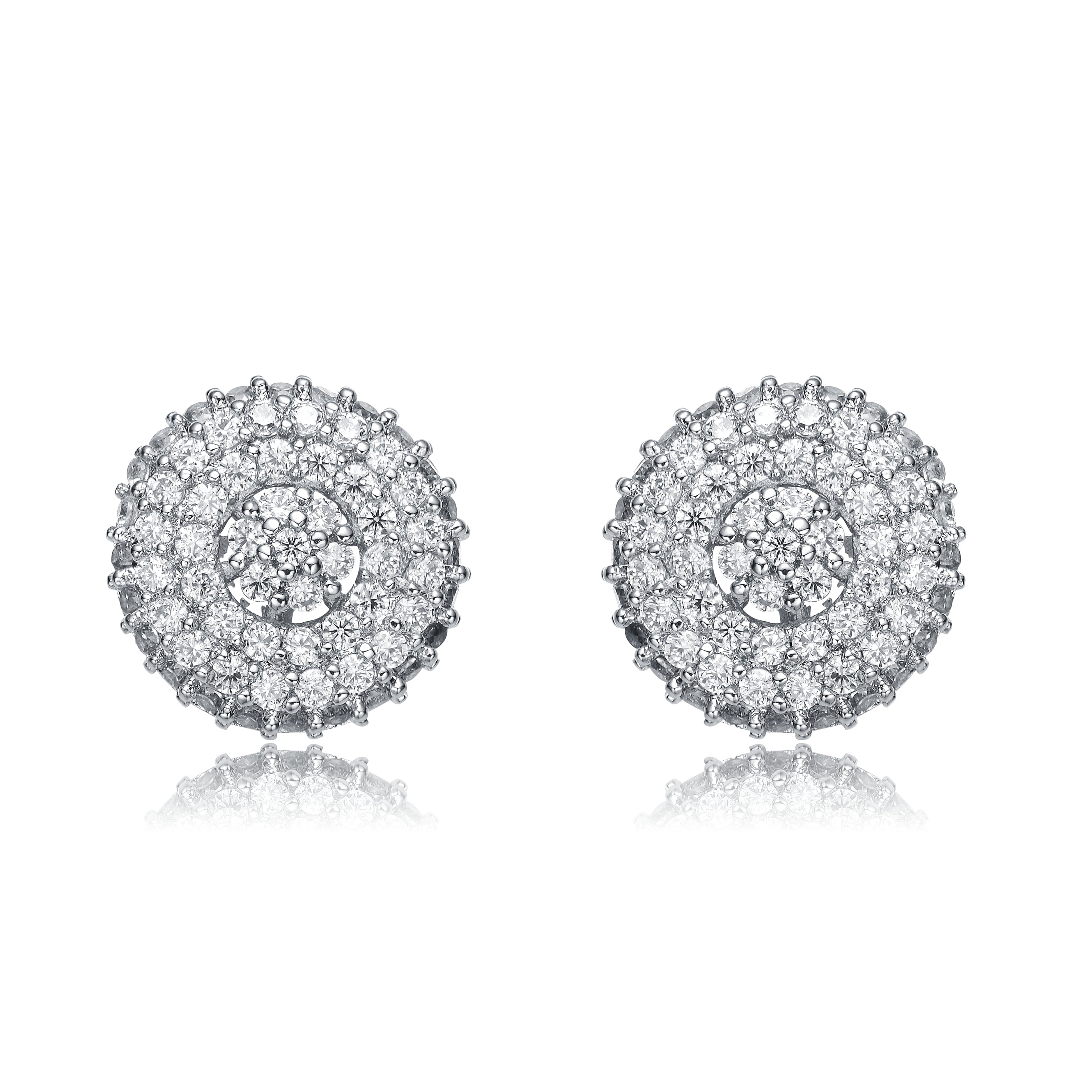 White Gold Plated with Cubic Zirconia Concentric Cluster Round Stud Earrings. Elevate your wardrobe with these sparkling stud earrings, finely crafted in a rich, luscious shine. Glittering round brilliant cut cubic zirconias pave set in concentric circles give these pretty earrings a vintage influence, reimagined into a lightweight, trendy style for today. Butterfly backs keep these round studs secure. Finish your look with eye-catching earrings as the main focal point of your attire.
