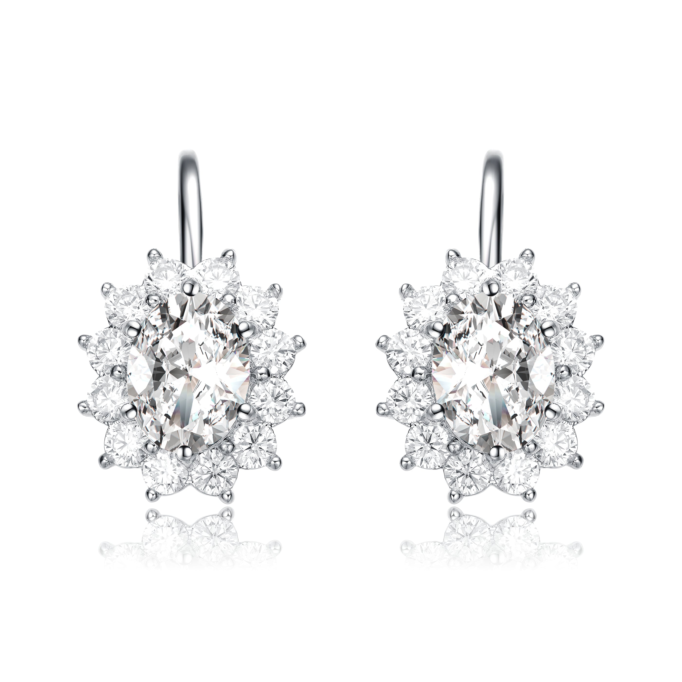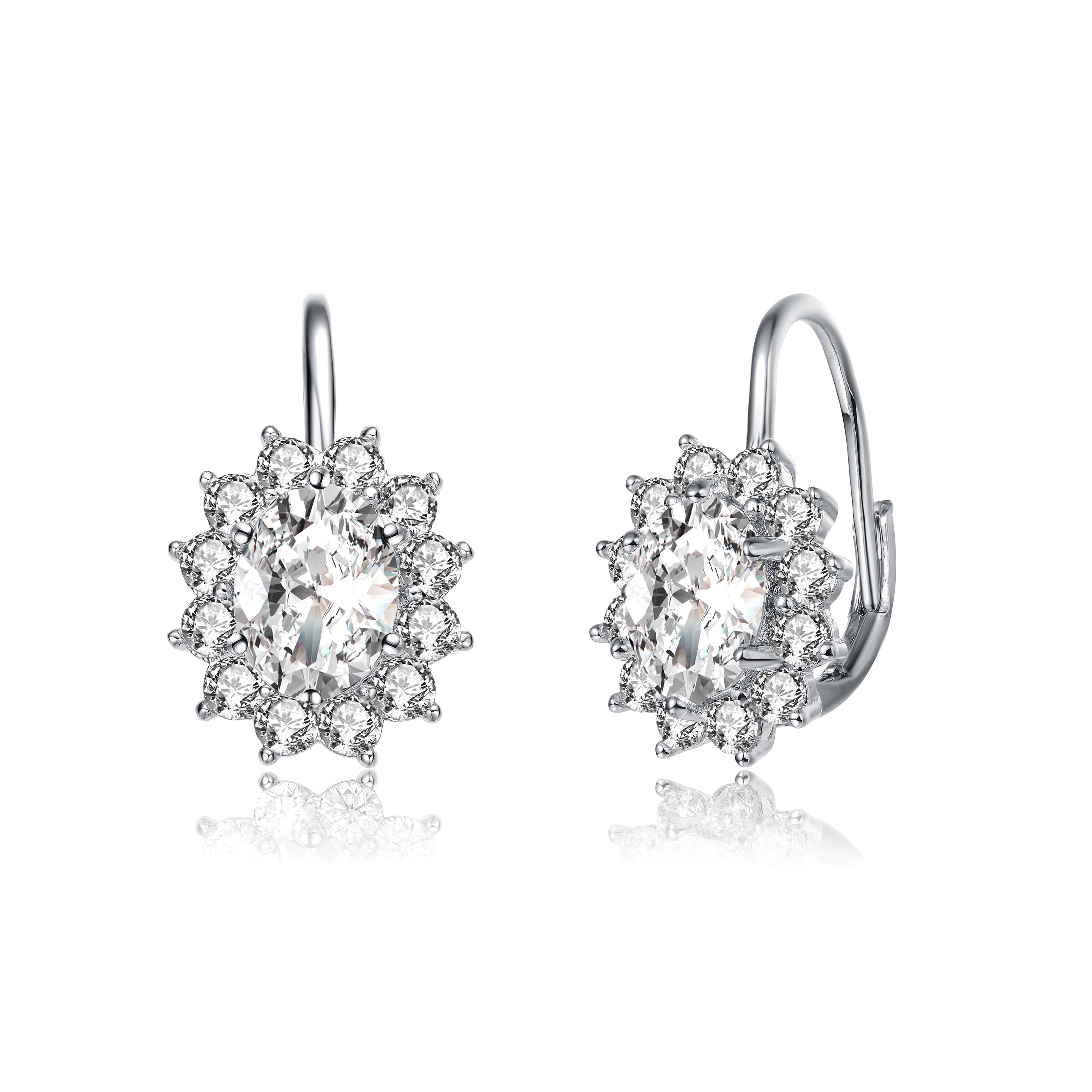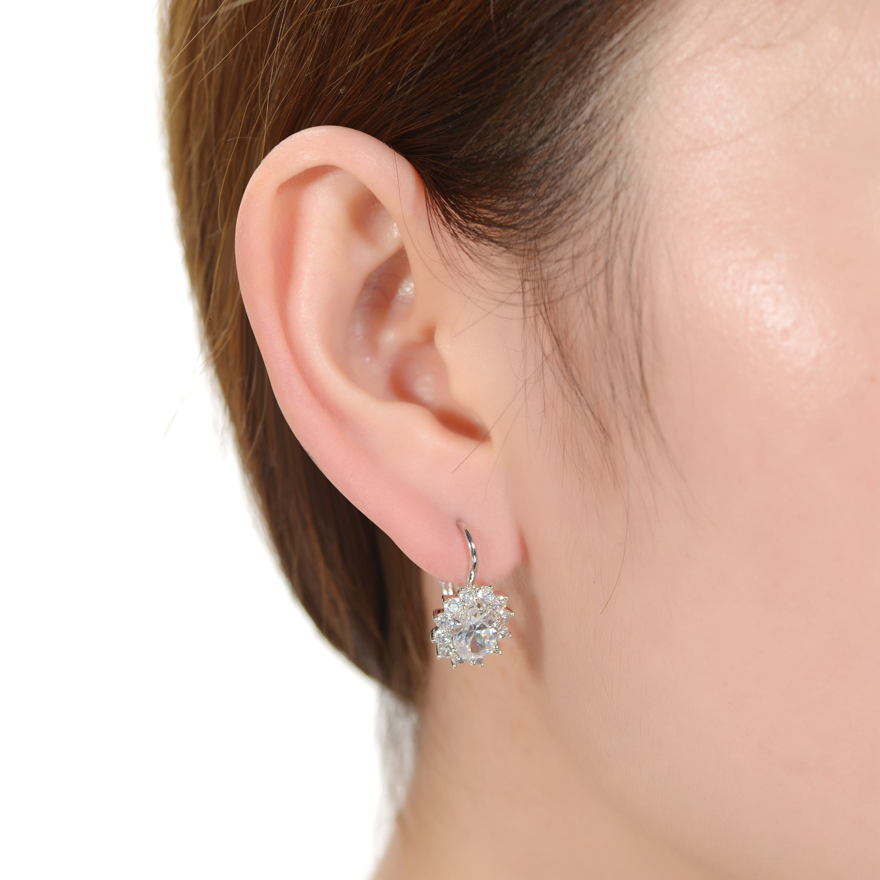 White Gold Plated with Cubic Zirconia Hibiscus Flower Cluster Drop Earrings w/ leverbackss. Exude vintage-inspired elegance with these pretty white gold plated earrings reimagined for your modern style needs. Glistening cubic zirconia solitaire stones prong set in the center complements the halo cluster of round brilliant cut cubic zirconia prong set in a Hibiscus flower shape. leverbackss keep these drop earrings secure, creating a graceful fit when worn. Created in a rich shine.