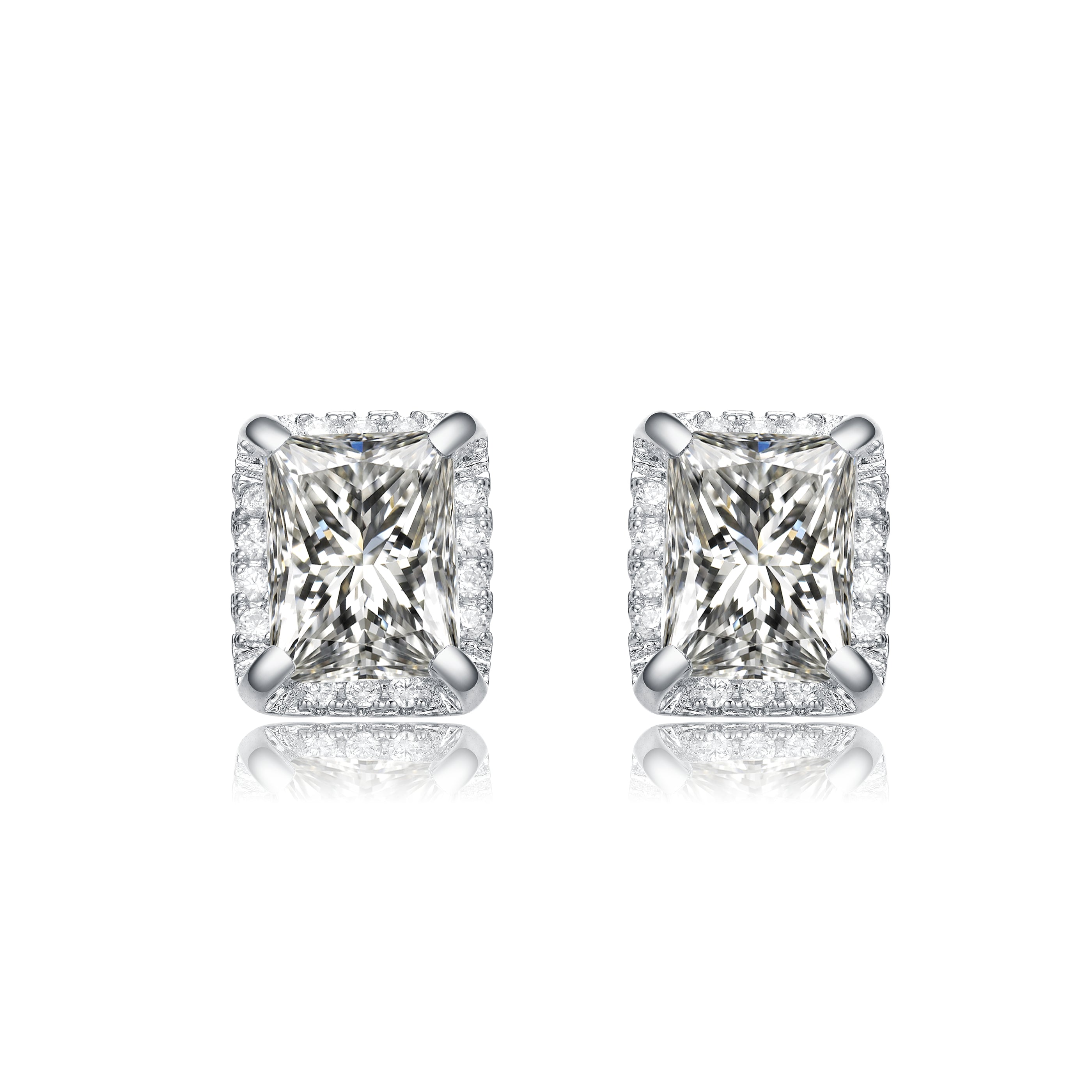 White Gold Plated with Cubic Zirconia Radiant Cut Hidden Halo Stud Earrings