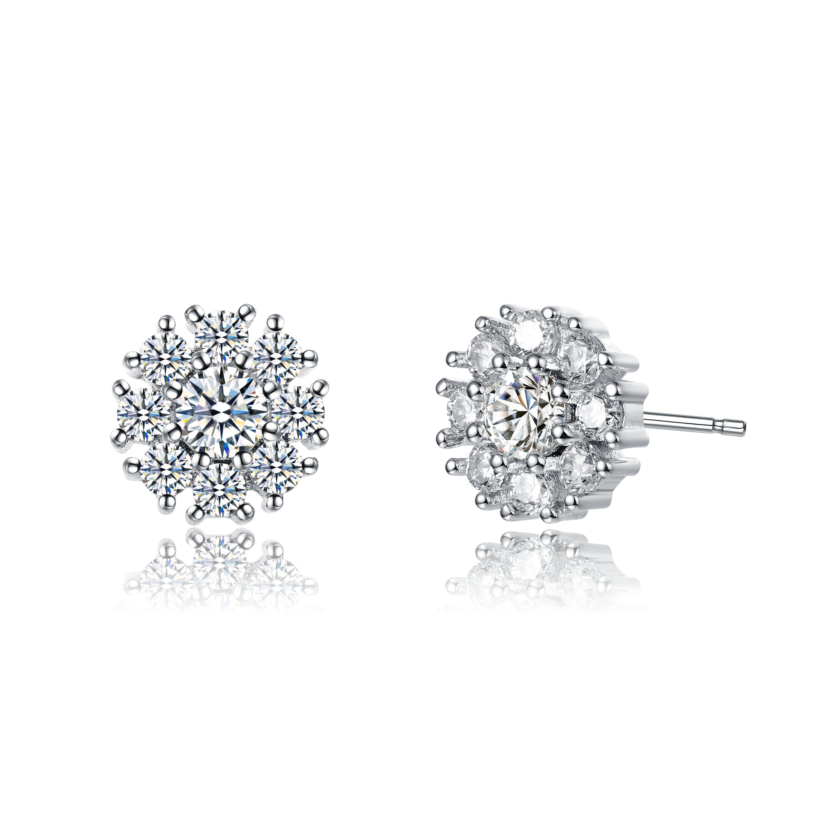 White Gold Plated with Cubic Zirconia Snowflake Cluster Stud Earrings